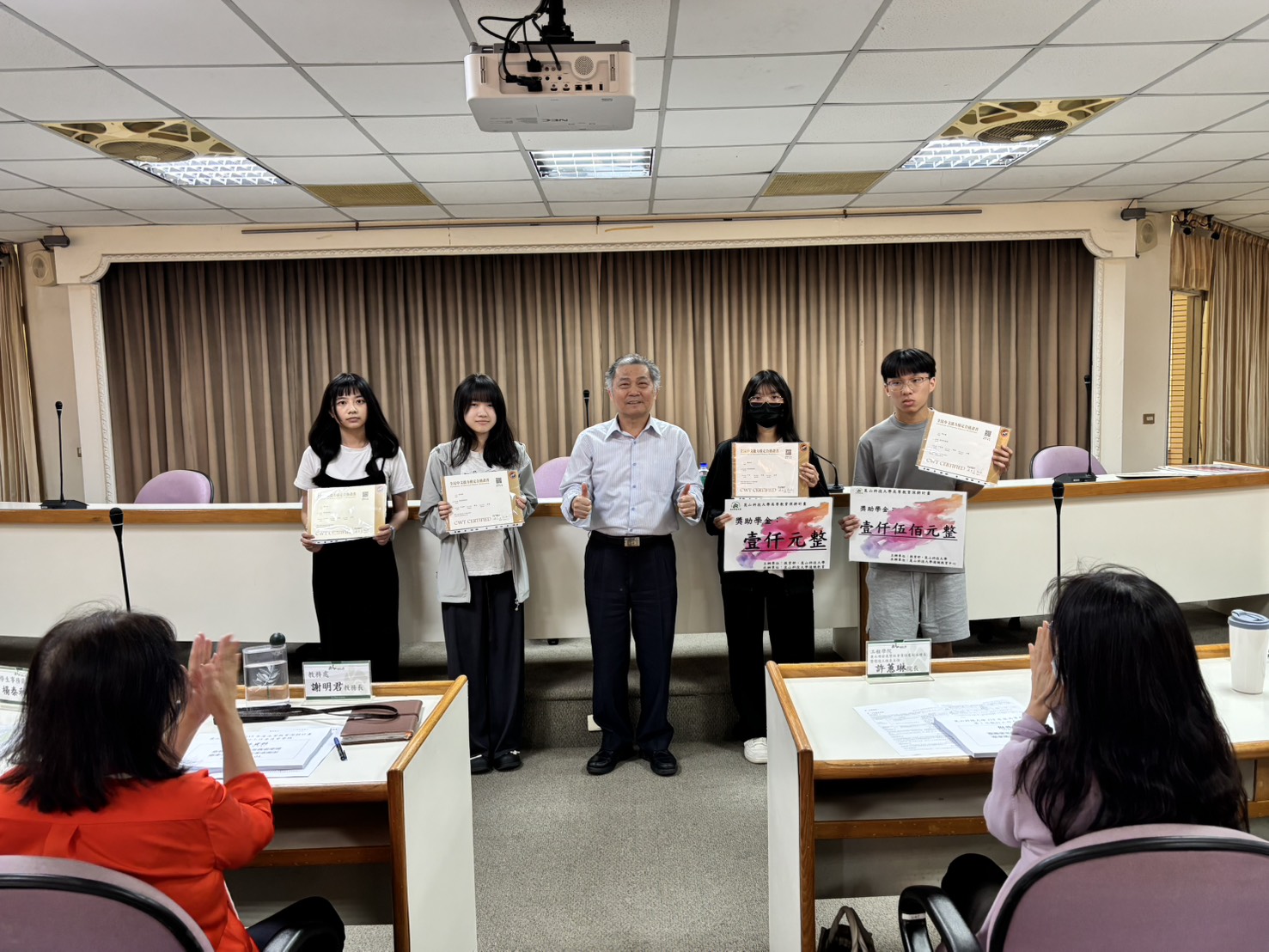 副校長鐘俊顏教授親自出席頒獎,他表示,該校近年來獲得教育部高教深耕計畫資金支持,購入CWT中文能力診斷系統作為檢核平台,並訂定「高教深耕計畫校外中文能力檢定成績優異獎學金實施要點」,為學生提供充裕的學習資源,每位學生的持續努力,是同儕的典範,也期望能激勵更多同學投入中文能力檢定,展現自我、提升競爭力,未來也將持續表揚表現優異的同學,營造良好的學習環境。