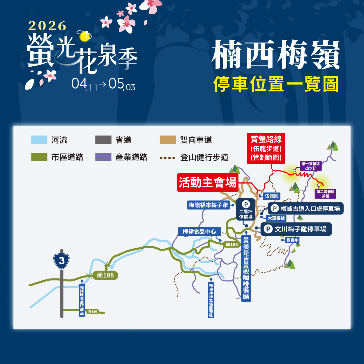 梅嶺賞螢停車資訊(圖-觀旅局提供)