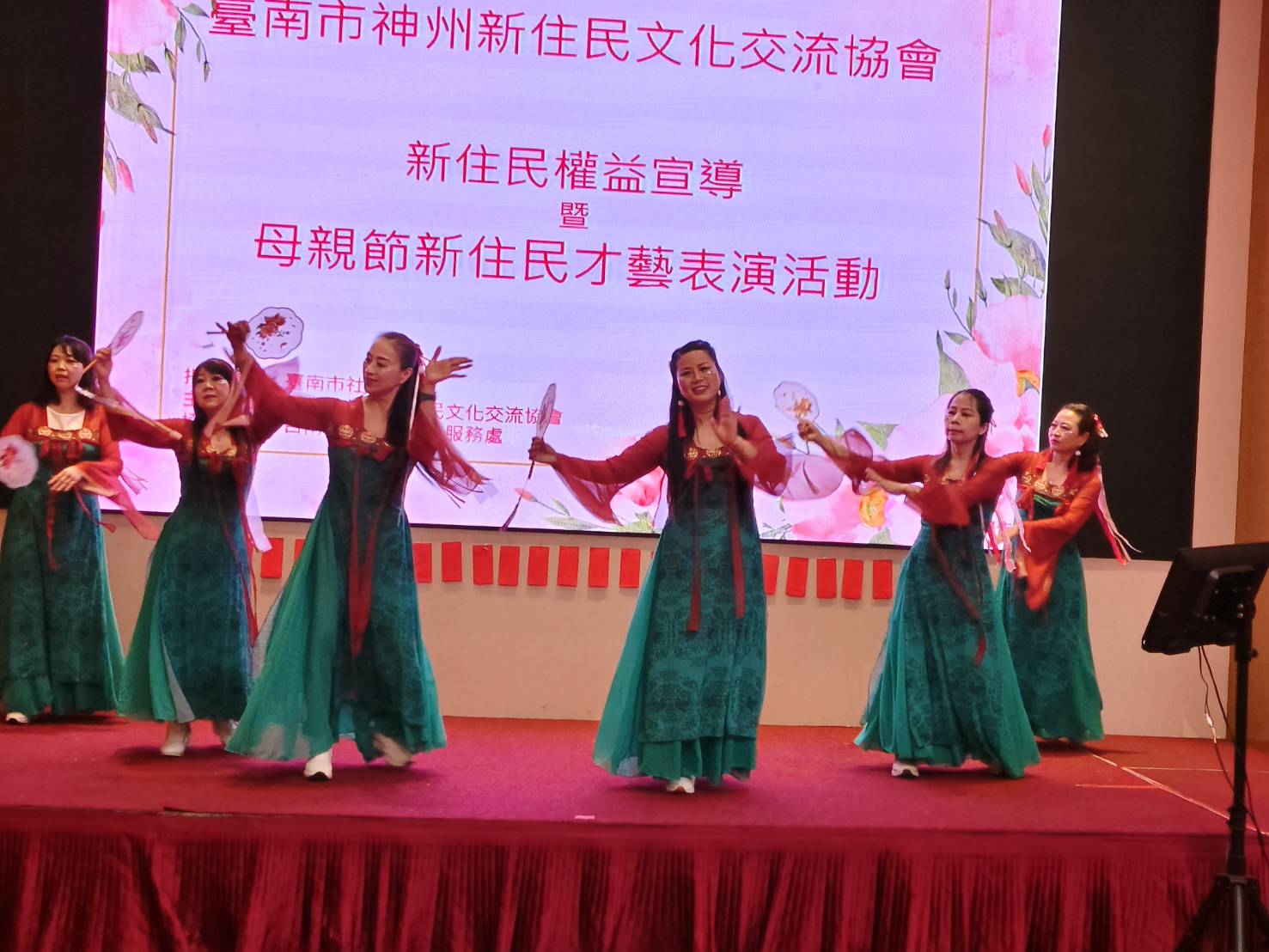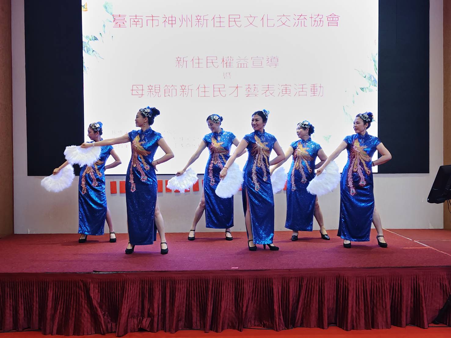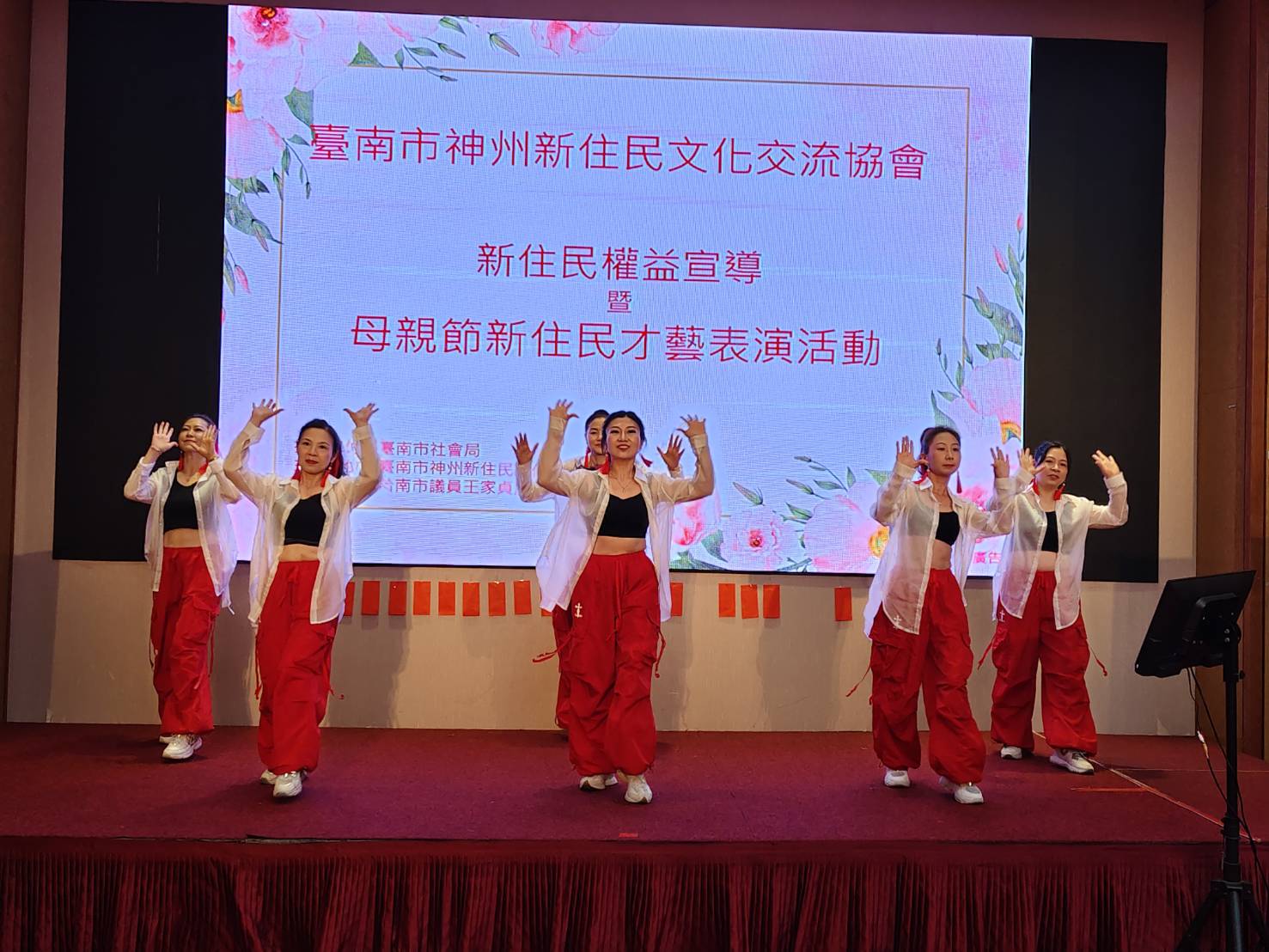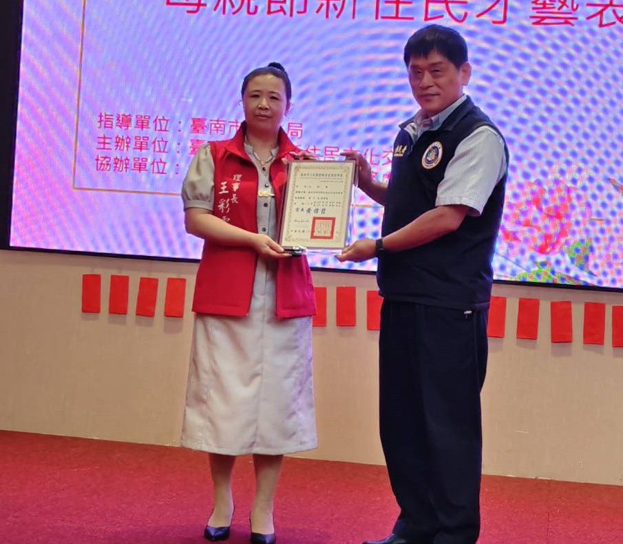 台南市神州新住民文化交流協會26日進行第三屆理監事授證,餐會時,各友會也出動表演團隊上台表演助興,而神州協會的舞團剛成立1個月,也上台表演2支舞。